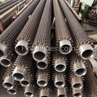 Cão de cavaloTubos de barbatanasOs tubos de resistência são fabricados por soldadura elétrica, formados especialmente em filas ao redor do tubo.O padrão em que os pernos estão dispostos no tubo também pode ser variado alterando o número de pernos por linha ao redor do tubo, o espaçamento entre as linhas, e se os parafusos nas linhas adjacentes estão deslocados.ou para aplicar vários pinos de altura diferentes na mesma linha. "Os pinos são carregados manualmente nos elétrodos e, em seguida, soldados automaticamente.